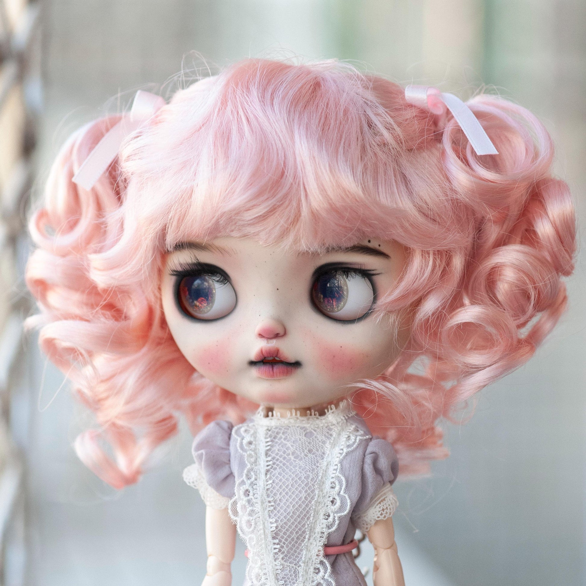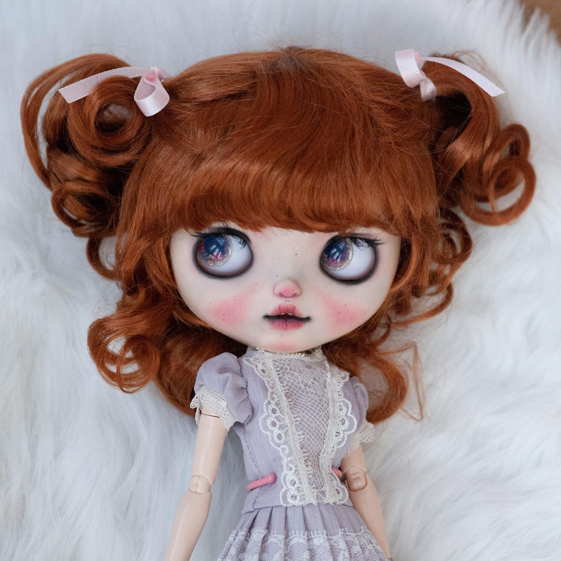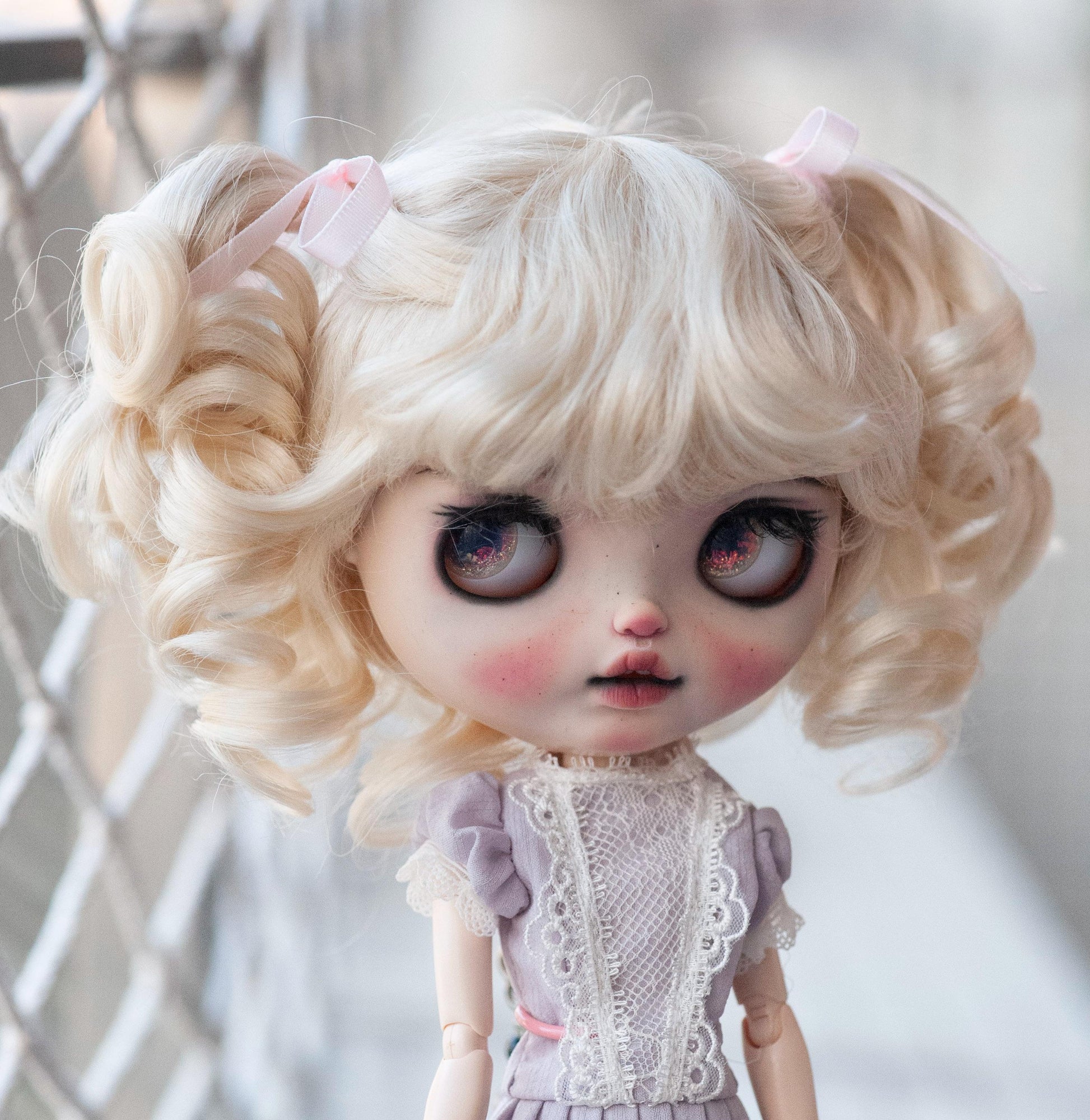 Short curly double tails wig for Blythe dolls, made with soft artificial fiber, feels comfortable and easy to style. Can be styled under 100 Celsius (212 Fahrenheit).