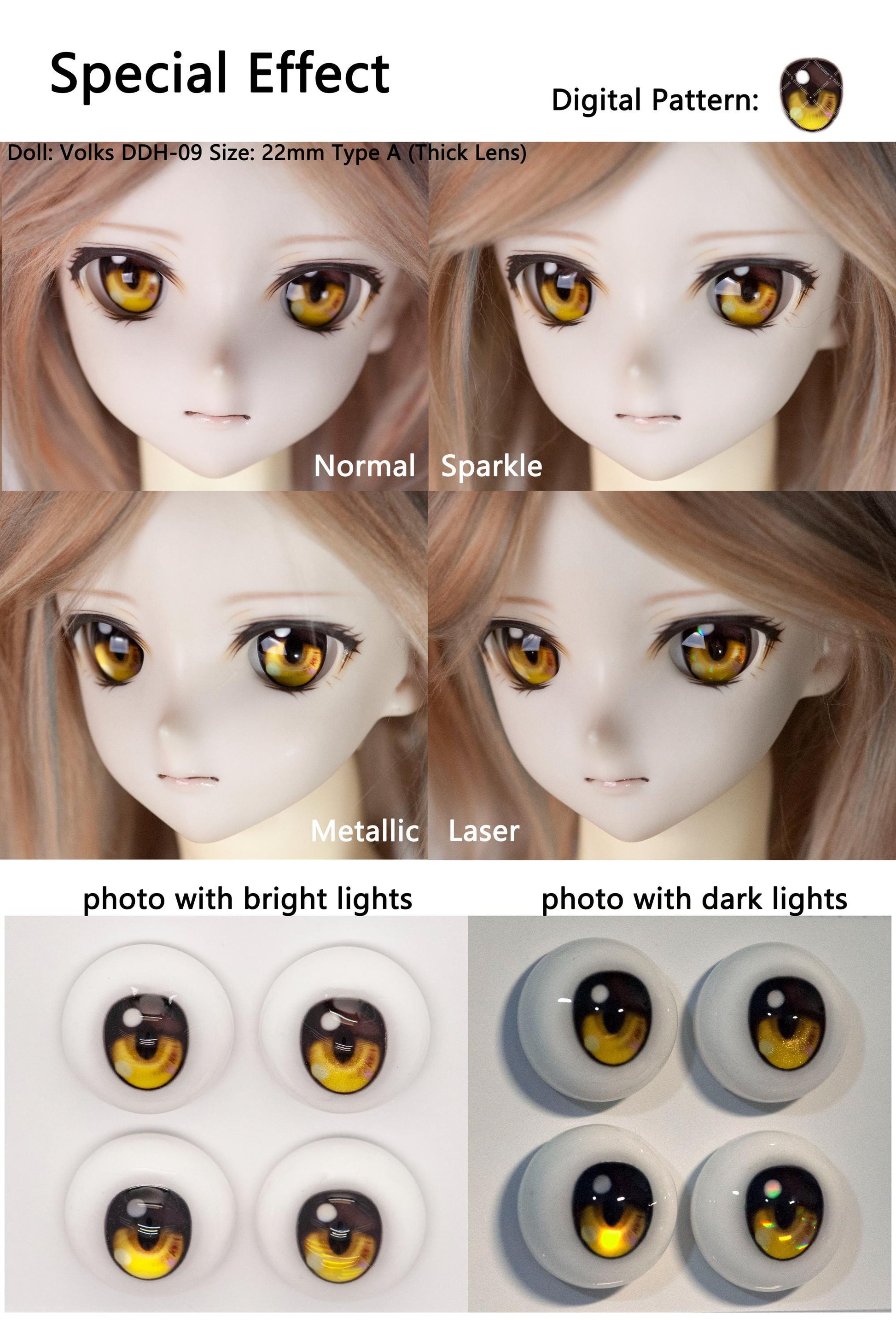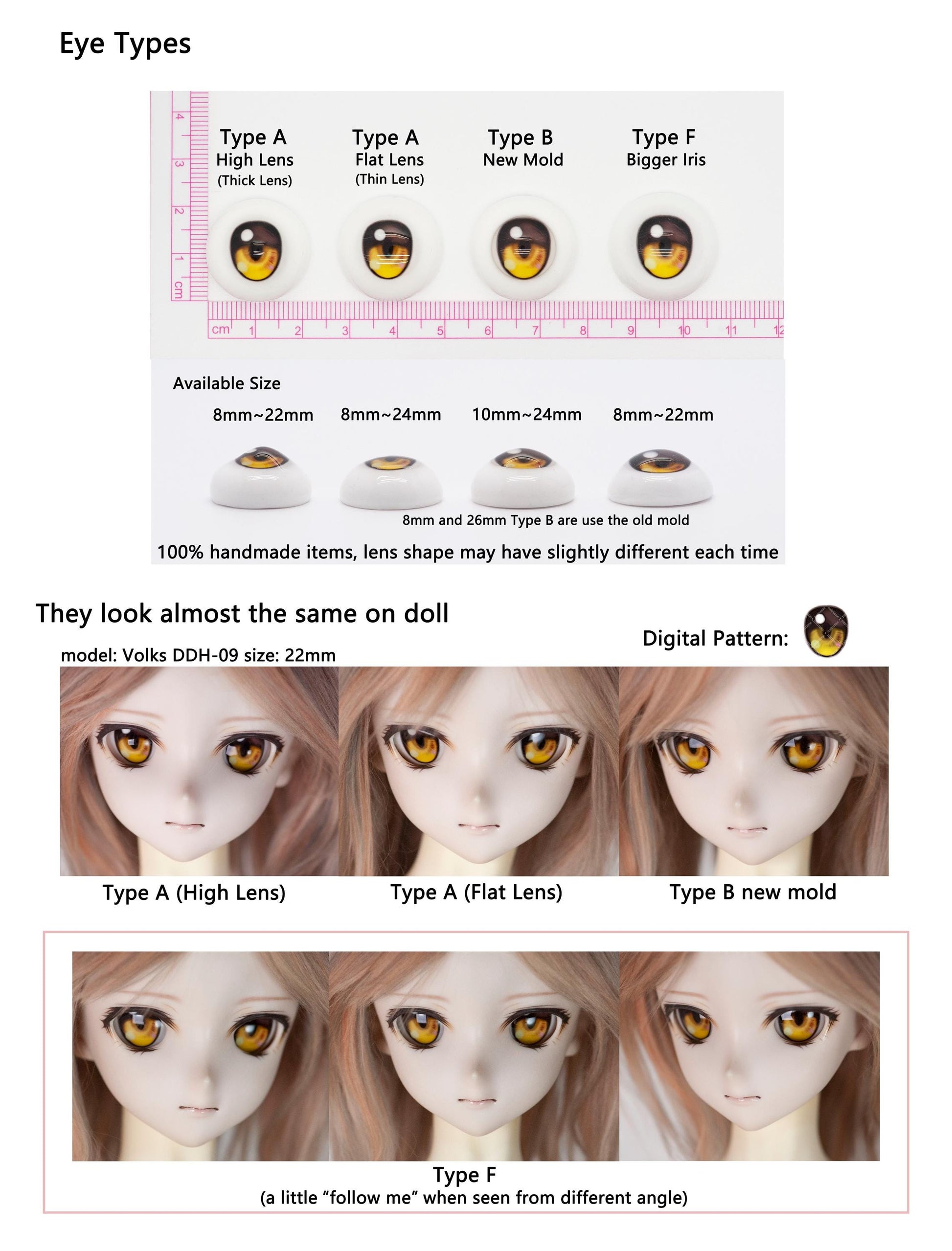 Resin eyes for BJD, Dollfie, Obitsu, Azone, and Smart Doll. Made in high quality transparency and crystal like resin material. Custom size from 8mm to 24mm.
