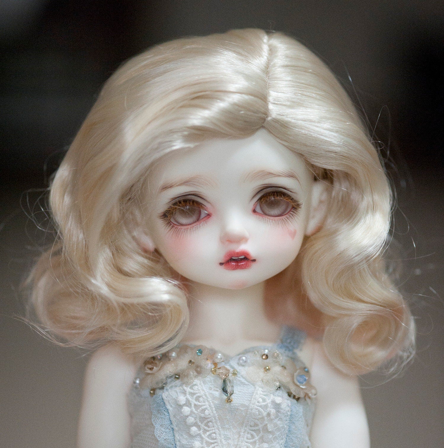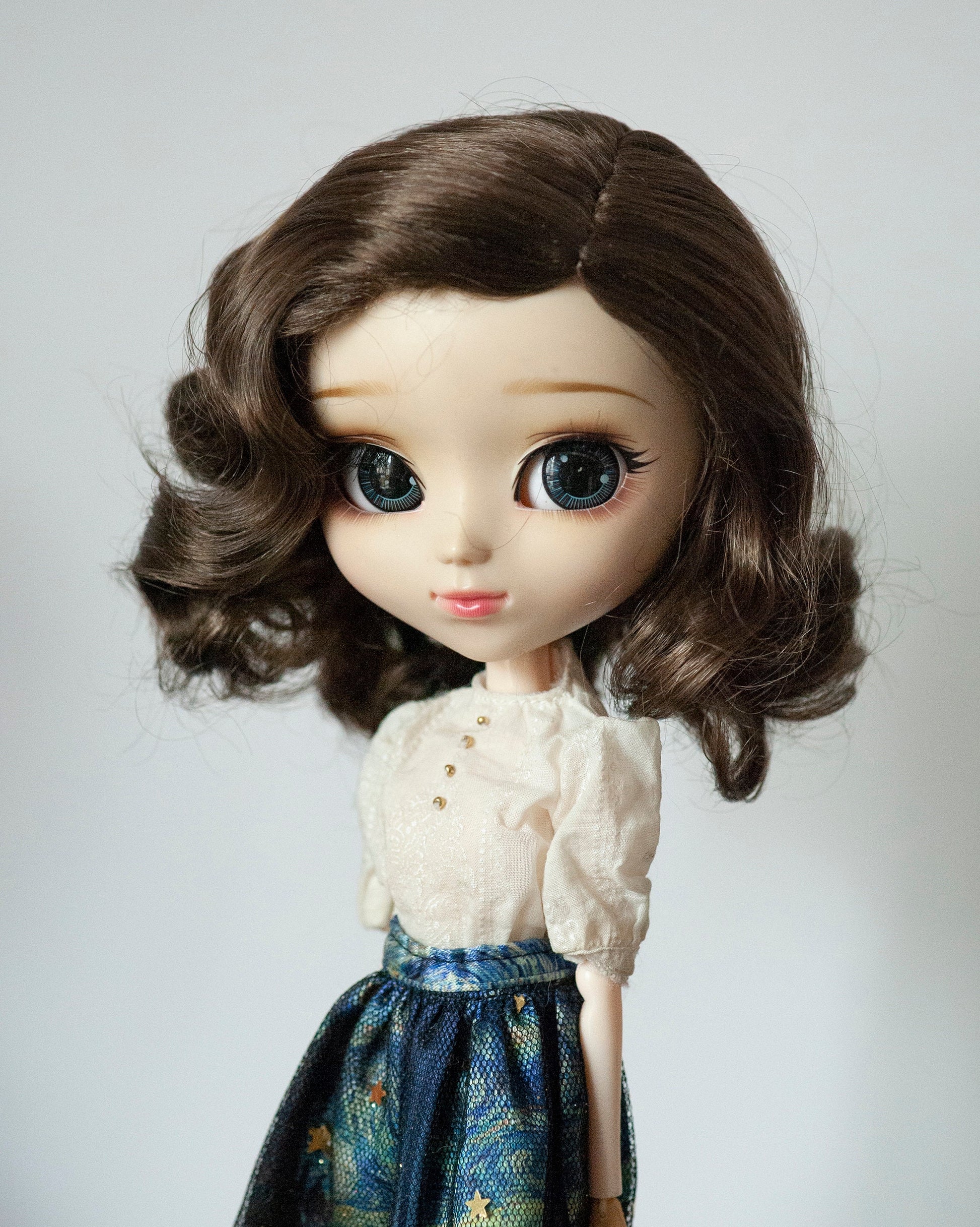 Classic retro waves style doll wig in dark brown and blonde color, made with soft artificial fiber, feels comfortable and easy to style.