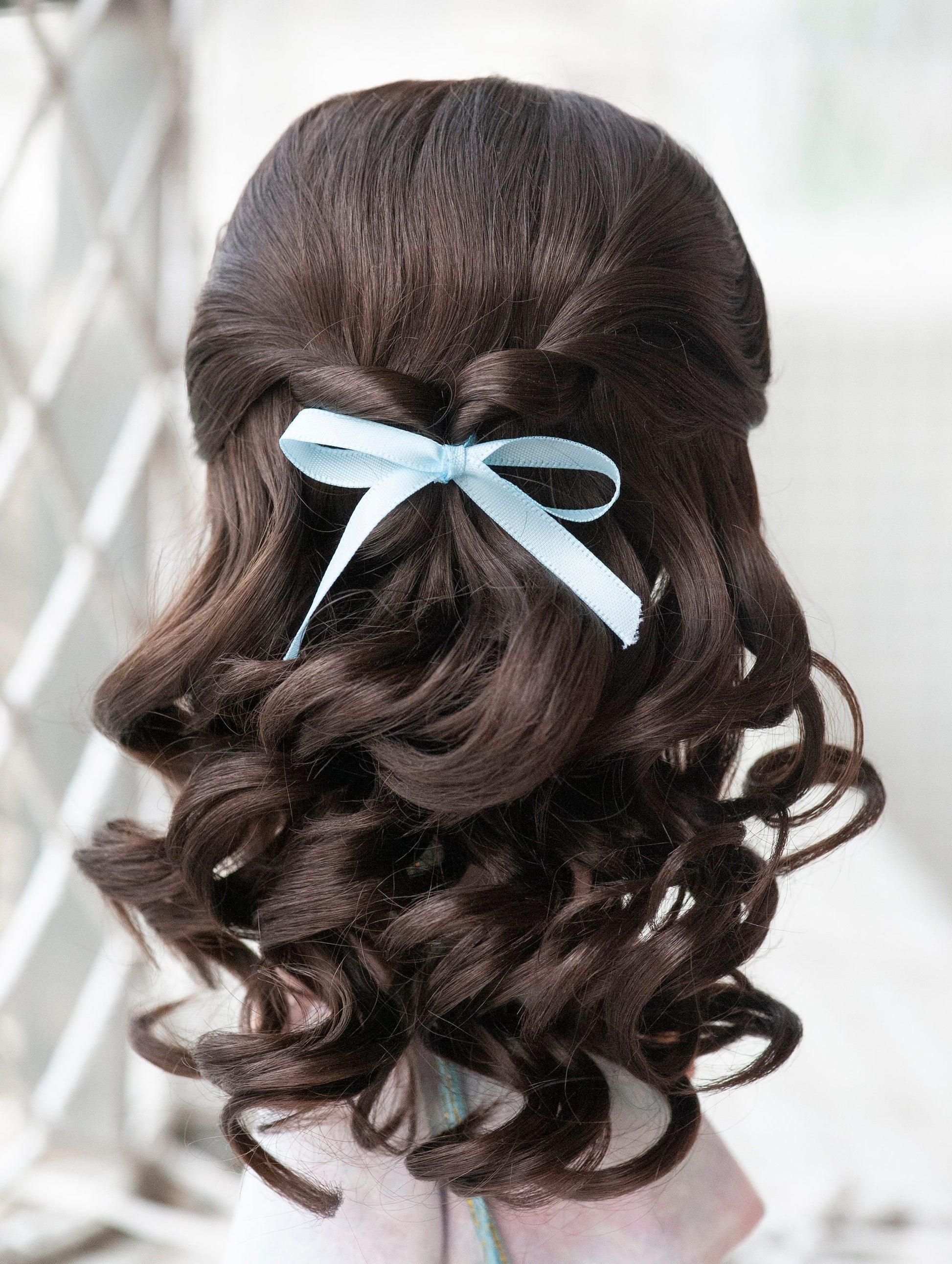 10-11“ Artificial Fiber Doll Wig Long Wavy with Braids and Bangs Dark Brown/Blonde