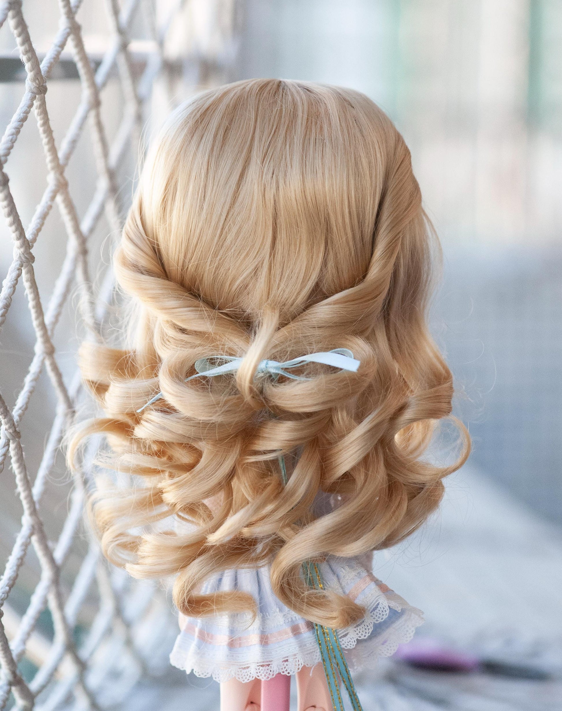 Long wig with cute curly style in blonde/dark brown color made of soft artificial fiber, feels comfortable and easy to style. Can be styled under 100 Celsius (212 Fahrenheit).